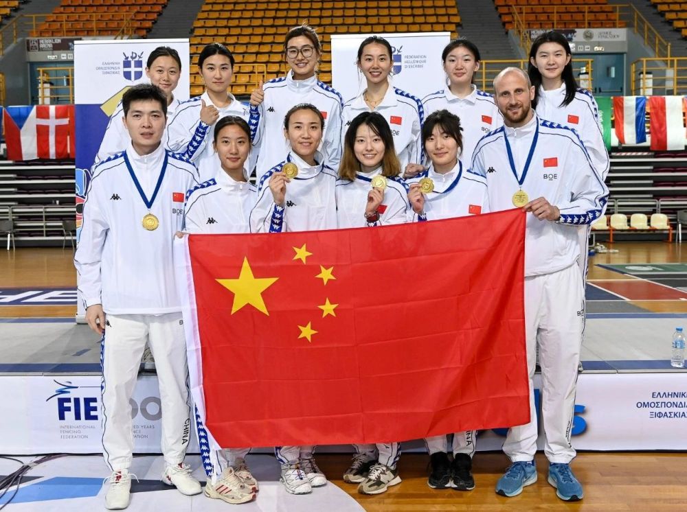 新华社雅典3月9日电 在当地时间9日进行的2024/25赛季国际剑联女子佩剑世界杯希腊伊拉克利翁站比赛中,中国队一路过关斩将摘得团体金牌。这是中国女佩自2011年伦敦站后,时隔14年再夺世界杯团体冠军。