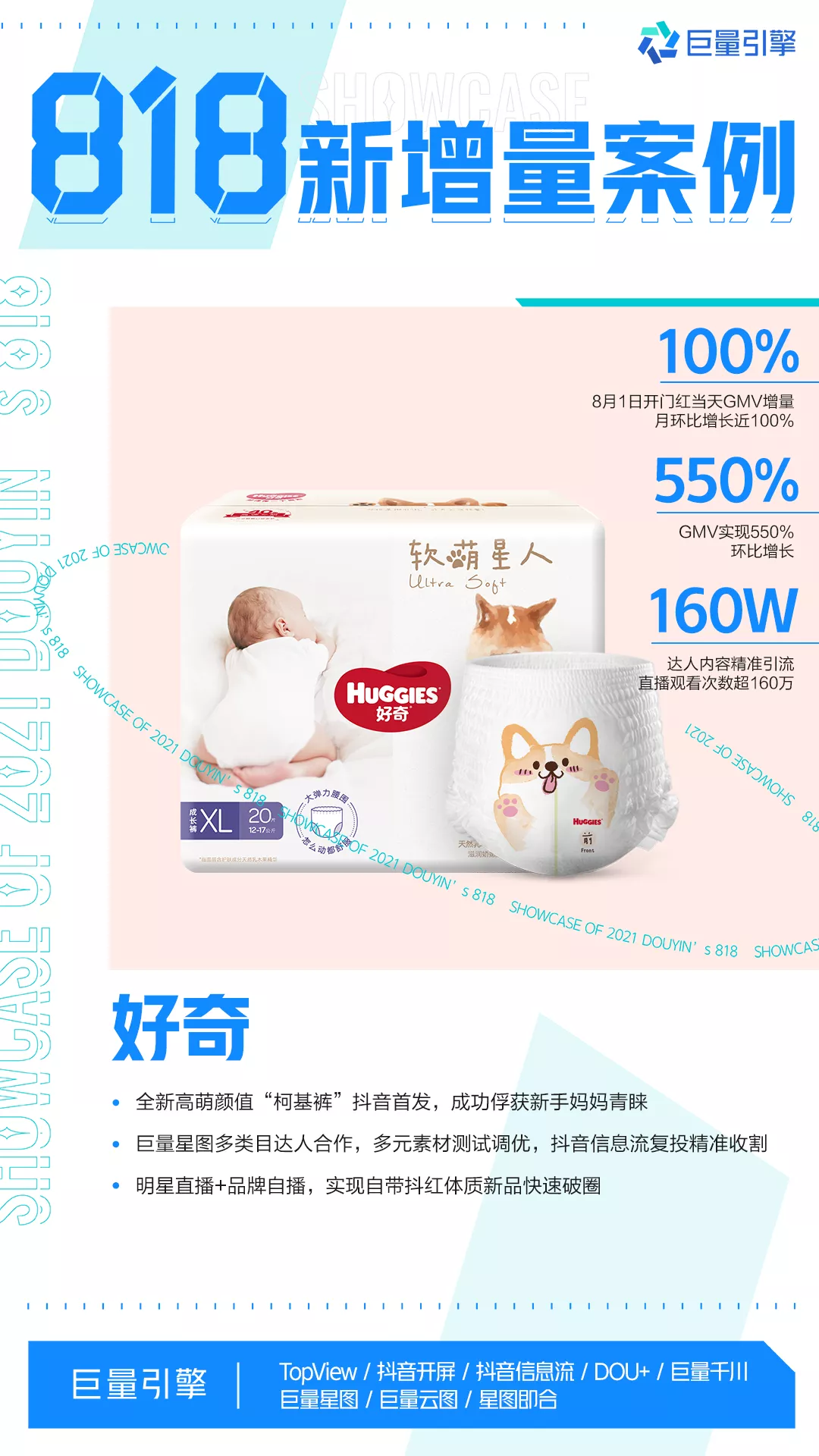 流量场中,“我们以品牌曝光量、ROI”为评估指标 ,袋鼠妈妈、滴露、添可、兔头妈妈、Ulike、伊利等品牌依靠巨量引擎商业产品投放引流精准触达,引爆销量,最终上榜。